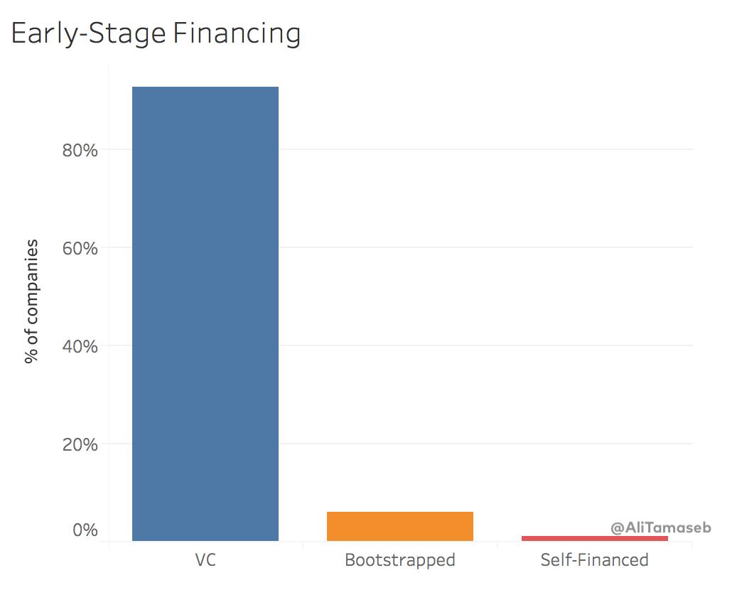 其余的,要么缺乏启动资金(靠可持续收入运营),最初几年没有筹集到任何风投资金,要么通过富有的创始人自筹资金。