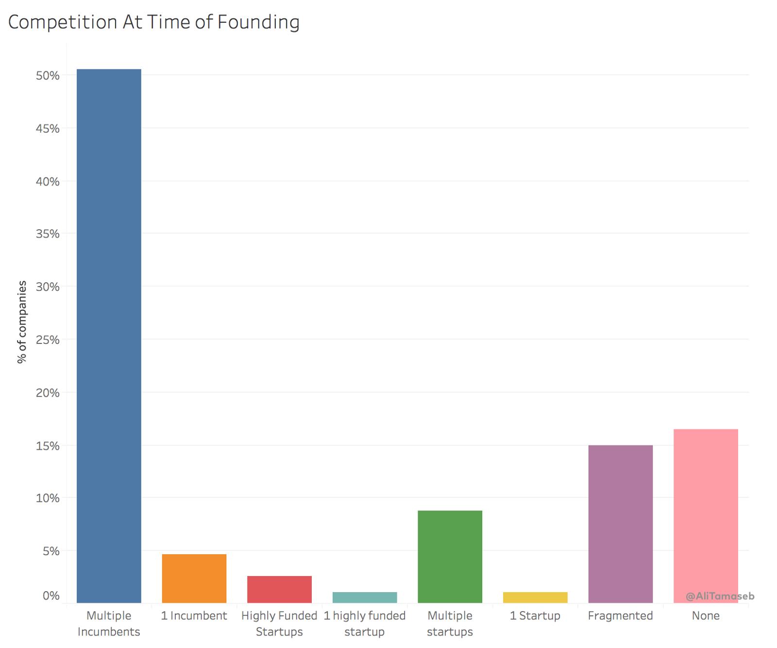 29、超过50%的公司在成立之初就与多家“现任”公司展开竞争