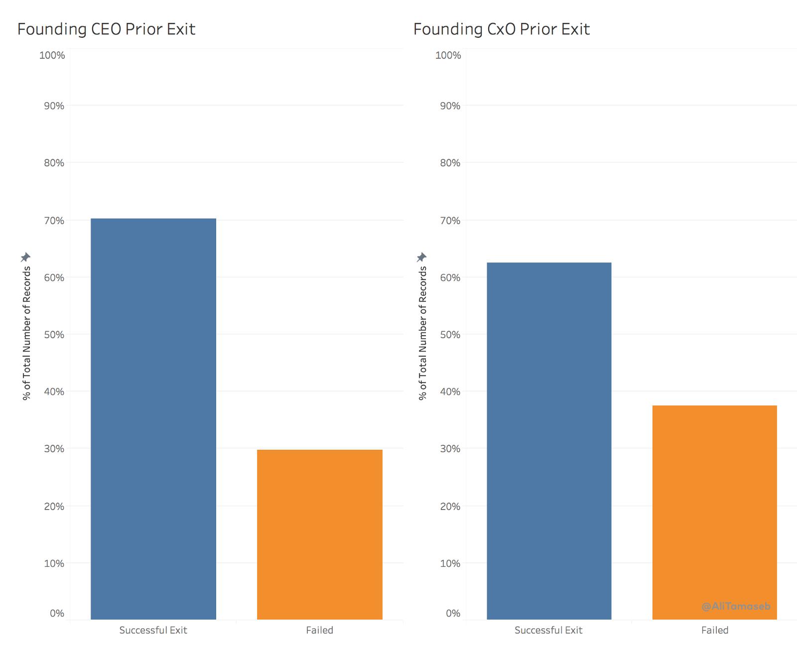 在这些曾经是创业者的CEO和CxO中,70% 的人至少有过一次成功的创业经历。