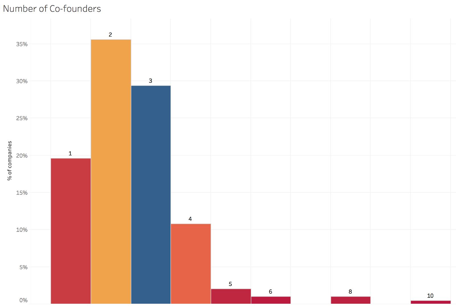 似乎一个创业公司有两到三个联合创始人是理想的情况。但重要的是,在所有估值10亿美元的创业公司中,有20%的公司只有一个创始人。