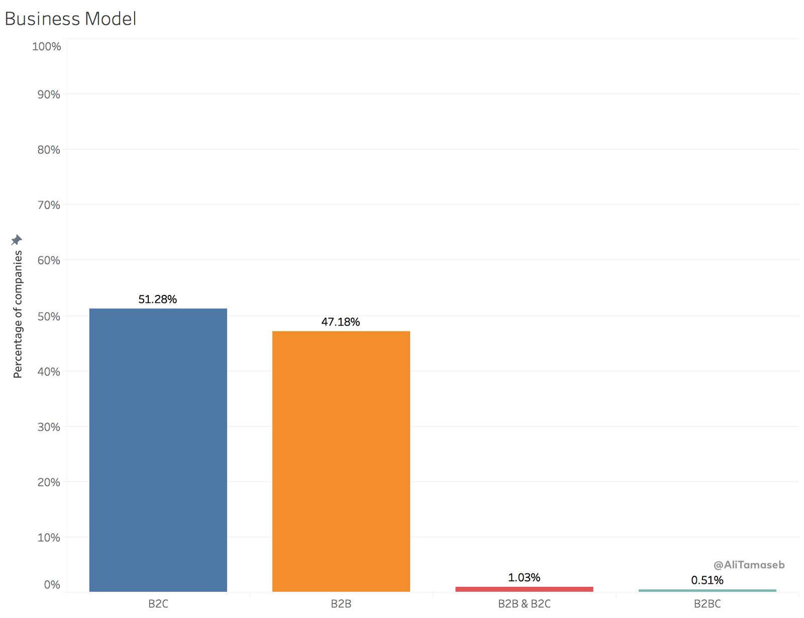 26、B2B和B2C公司的数量相近,很少有公司两者兼顾