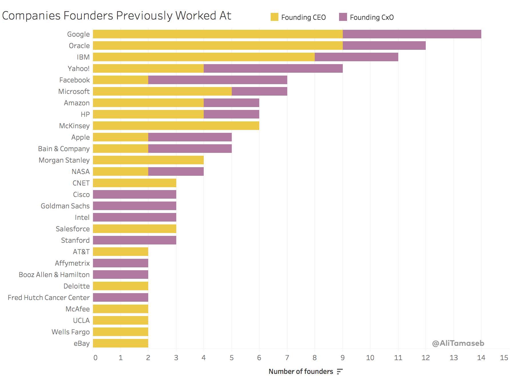 如果创始人以前曾在公司环境中工作过(他们中的许多人只为自己工作过!)大概率是在一家第一梯队公司。