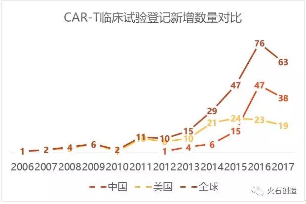 图7 CAR-T临床试验登记新增数目对比