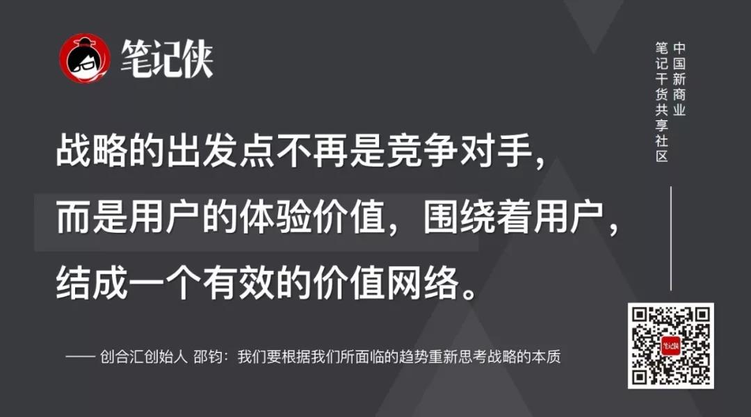 我们要根据我们所面临的趋势重新思考战略的本质,战略的出发点不再是竞争对手,而是用户的体验价值,围绕着用户,结成一个有效的价值网络。