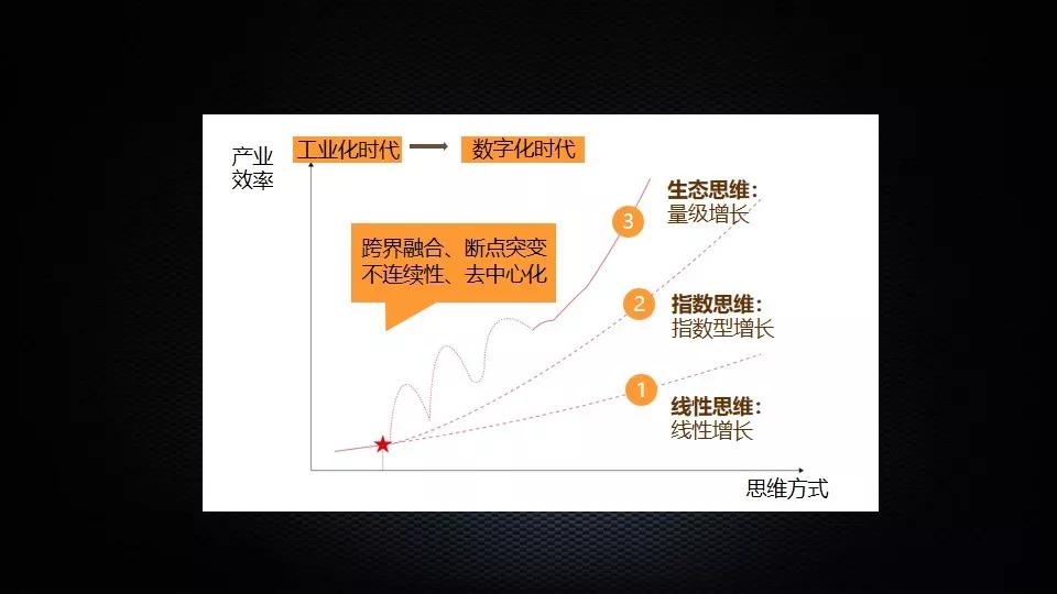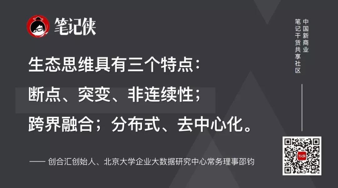 耐克公司最近把自己定义为运动数据的分享平台,所以,我们要从线性思维转变为指数型思维,再到生态型思维。