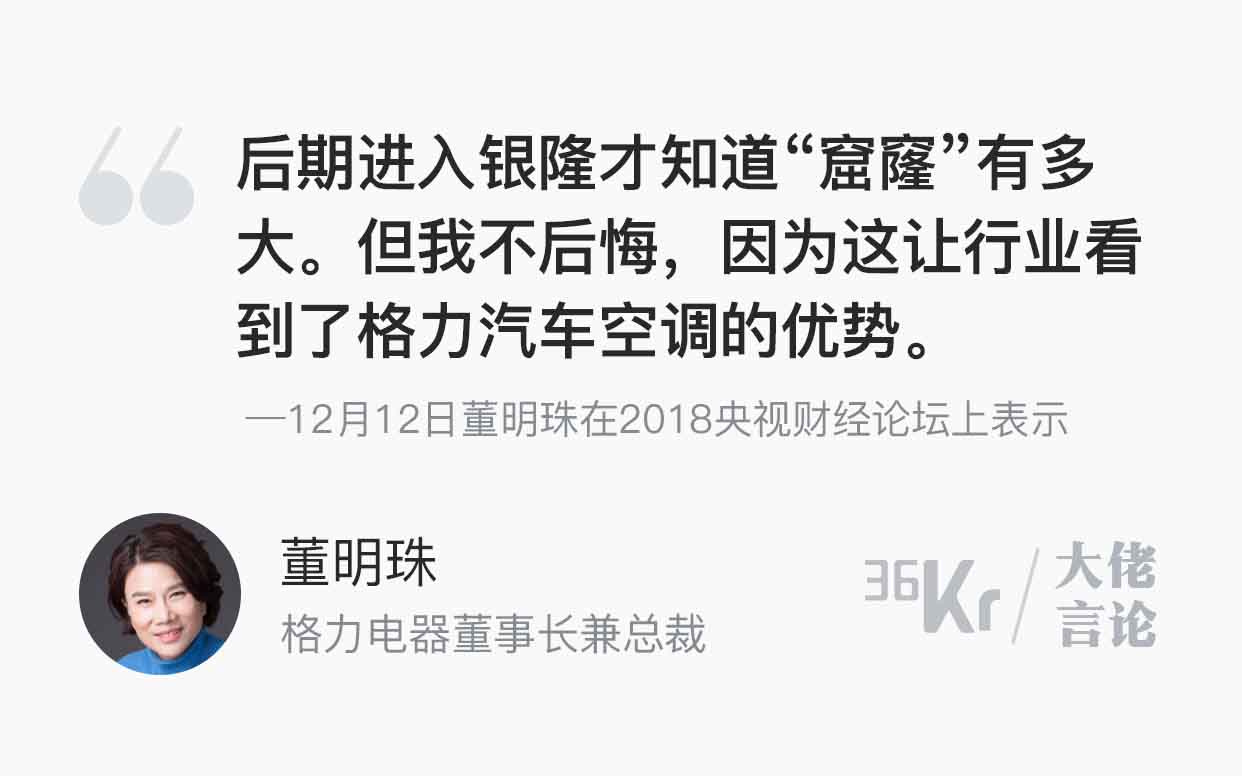 “进入银隆不后悔,因为这让行业看到了格力汽车空调的优势”