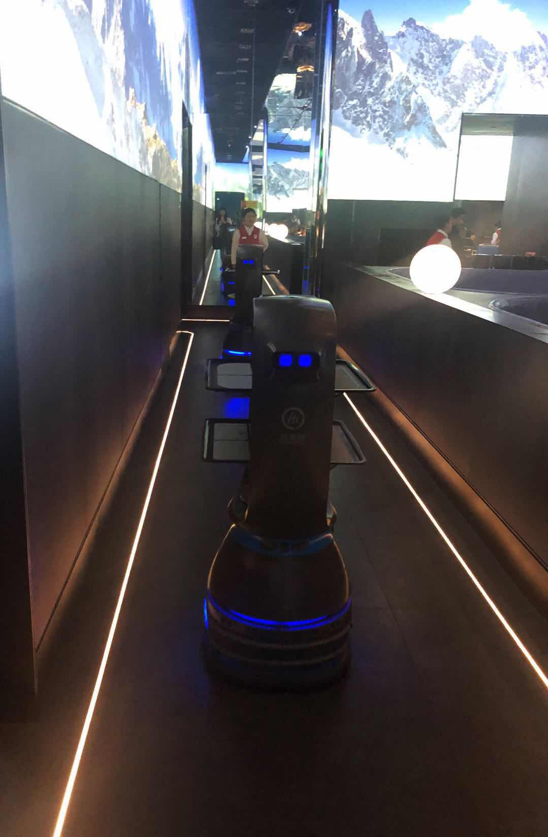 不过菜最终还是要由人类服务员从机器身上取来,摆到你面前的。也就是说,你依旧会享受到服务员三四趟递过来的、热得恰到好处的湿毛巾、眼镜布、女生的头绳,以及为你把酒杯斟满……
