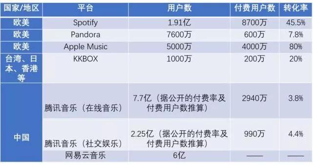 ▲ 全球主流音乐平台付费率概况. 图片来自:36氪