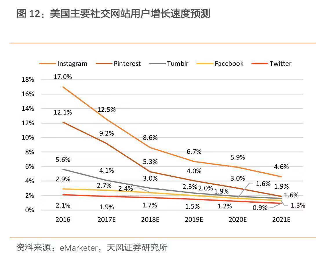 Facebook APP的用户与变现能力均趋向增长周期尾声,不过Instagram 和 WhatsApp对年轻人有较强的吸引力,凭借这两款APP,Facebook依然可以保持较好的增长。