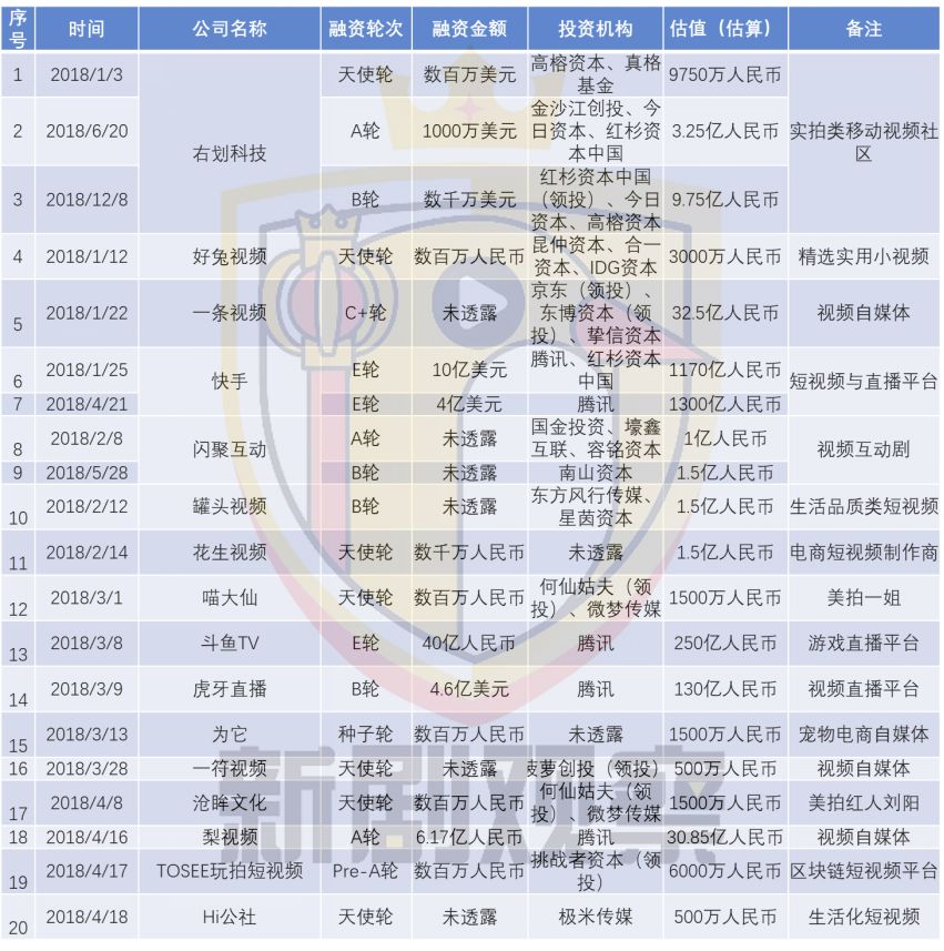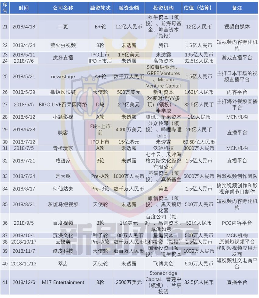 截至12月初,2018年短视频、直播等相关领域已经发生超过40起融资,平均下来基本上每周都会有1起。