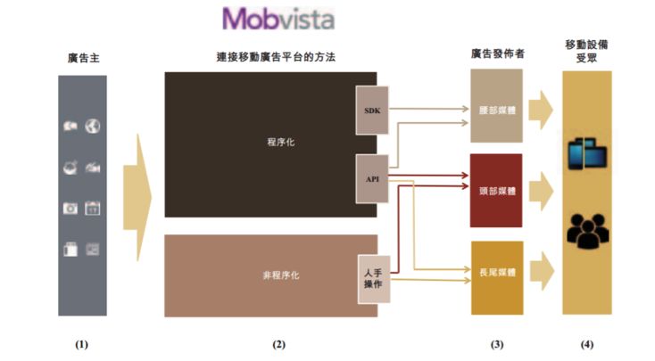 具体来说,汇量科技(Mobvista)基于大数据和AI技术数据,同时为广告主和广告发布者提供信息传输和数据分析服务,利用完善的用户画像实现精准营销,通过广告信息在从广告主-广告发布者-移动设备受众之间的传输,使移动端受众接受到其感兴趣的广告信息,从而使广告主获客,广告发布者的流量变现。