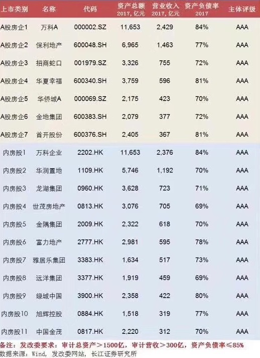 此外,重点支持的优质企业主要经营财务指标应处于行业或区域领先地位。其中,房地产行业财务指标要求包括:房企资产总额应大于1500亿元;营收大于300亿元;不超过所在行业资产负债率重点监管线,未明确重点监管线的,原则上资产负债率不得超过85%。