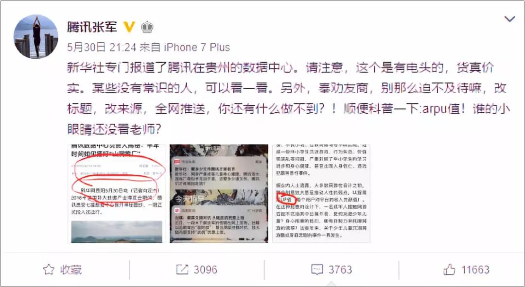 当时,正值腾讯与今日头条“对战”期间,此事引发了网络上反响强烈的争议,腾讯张军(公关总监)在微博上对此事发表了看法。