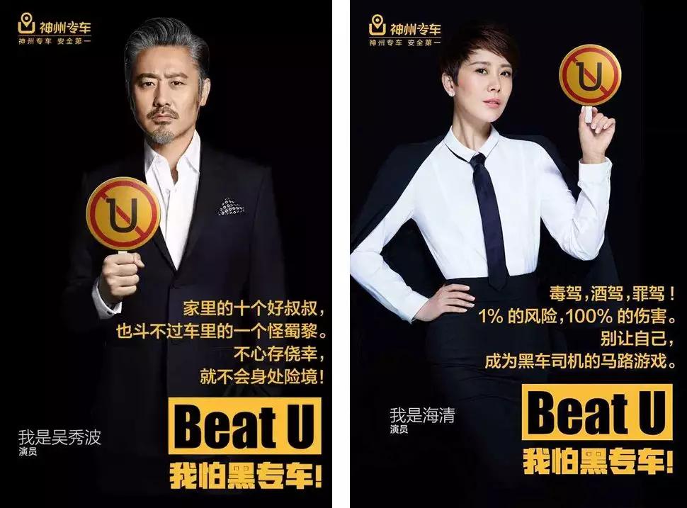 2015 年 6 月,神州专车制造了一次主题为“Beat U !我怕黑专车”的事件营销,并请了吴秀波、海清等明星“举牌”代言。这次营销将还没有什么知名度的神州专车一夜成名,也成为震惊全国、争议极大的事件营销。