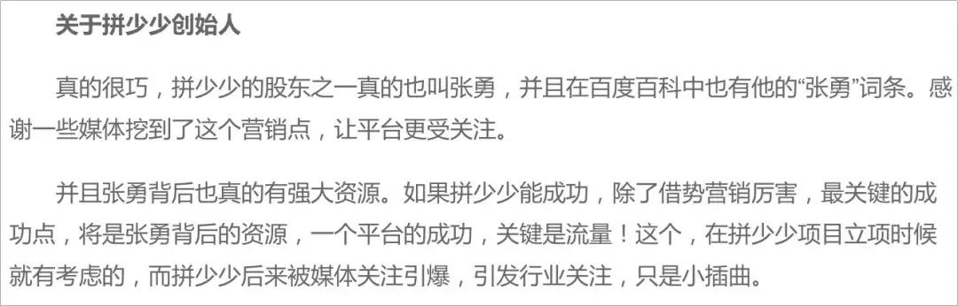 可以说,作为一个新平台,拼少少没有上线就获得了不一般的关注度,但是这种用“碰瓷”营销的来让自己火的方式,最终效果能有多好?我持很大的怀疑态度。