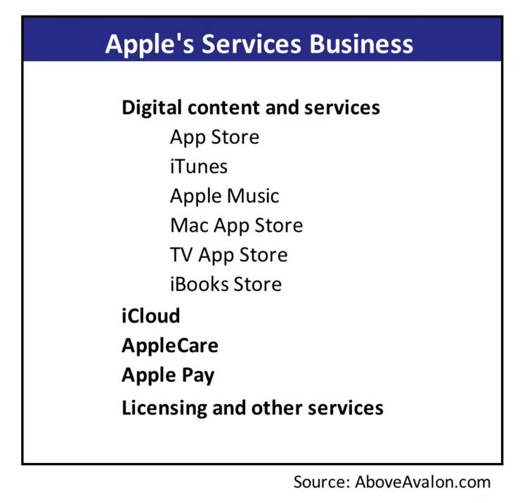 目前,苹果的服务业主要包括数字内容、iCloud、AppleCare、Apple Pay和授权,最新的财报数据则显示,公司服务业收入达到99.8亿美元,再创历史新高,较去年同期的85.01亿美元增长17.4%。此外,公司CEO库克还预测到2020年时的服务收入增速大概是20%。