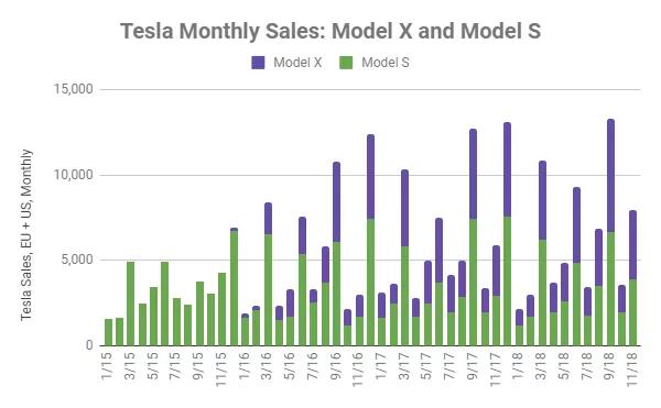 根据财报,公司通常Model S和Model X数据合并披露,而且从各季度数据看,公司通常季度第一个月卖车最少,最后一个月卖车最多,所以以两个月数据直接乘1.5倍估算季度数据是不准确的,如下是基于以上两大网站得出的月度数据:
