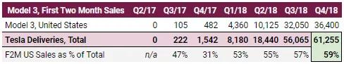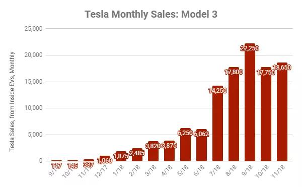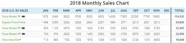 Model 3欧洲销售并未开始,市场称将于明年2月在欧洲推出。Inside EV提供的美国国内销售情况如下: