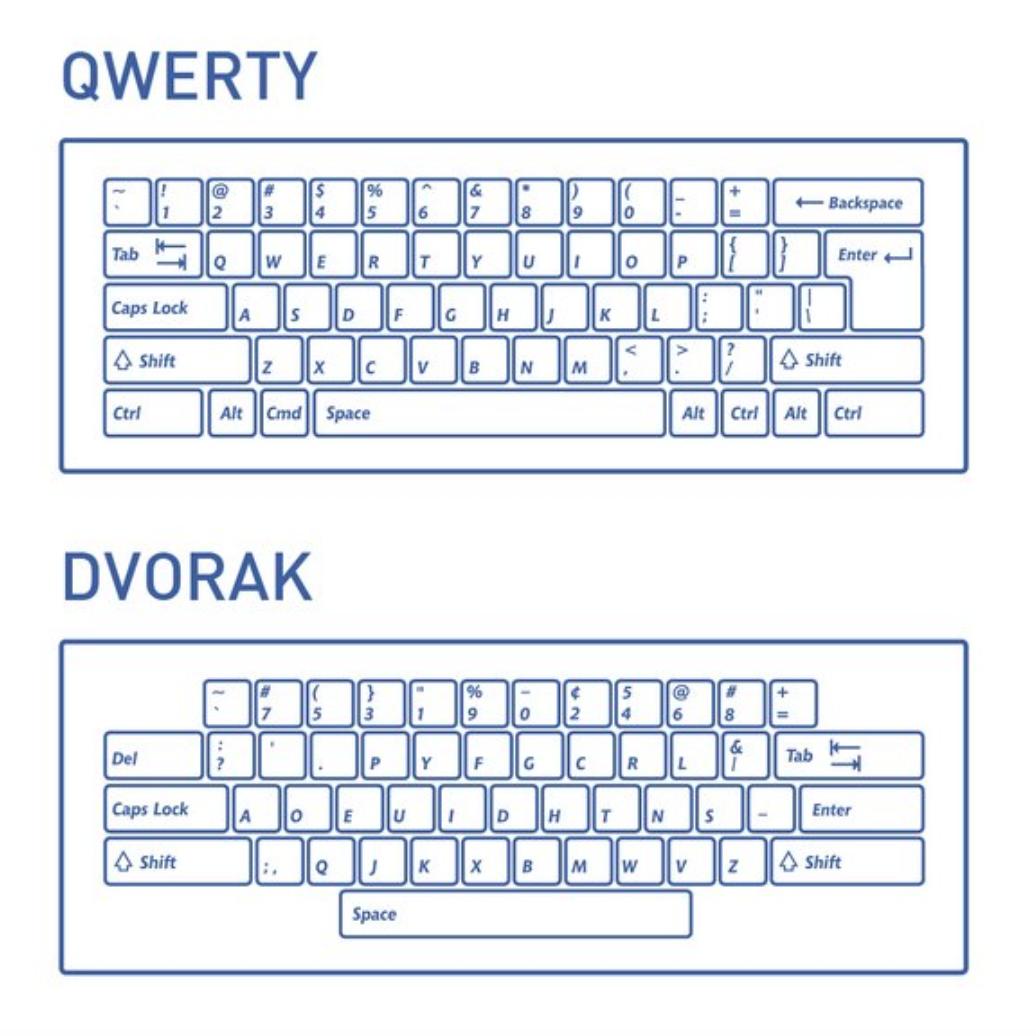 在上世纪 90 年代,世界上打字最快的人使用的是一种名为 Dvorak 的键位布局,据说这种键盘将 70% 的常用键位放在了靠中间的位置,而不是像 QWERT 一样分散开来,这不仅能有效加快打字效率,还能缓解长时间打字的带来的疲劳。