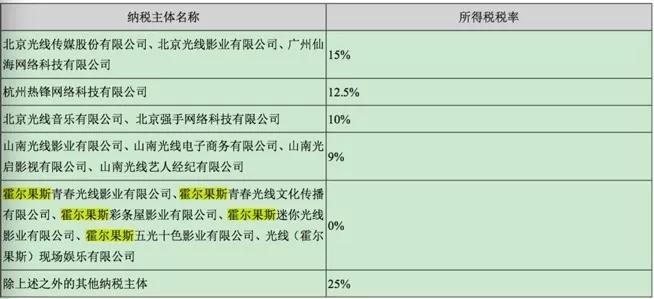 以披露了相关子公司财务数据的光线传媒和华策影视为例,2017年霍尔果斯青春光线影业有限公司营业利润达到了4.18亿,华策影视三家子公司同期的营业利润也达到了4.23亿。在非税收优惠地区,传媒企业税率一般按利润的25%征收,即这两家公司均需要交纳1亿元以上的税款。