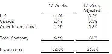 最核心的同店可比销售数据增长强劲,调整后总体同比增速为7.5%,美国市场依旧增幅领先,达到8.3%。