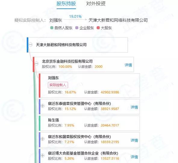 企查查资料显示,旭航网贷法人为张雱,京东钱包执行董事兼经理,曾任职京东金融,现为刘强东助理。而从股权结构来看,刘强东持股19.01%,疑似旭航网贷的实控人。