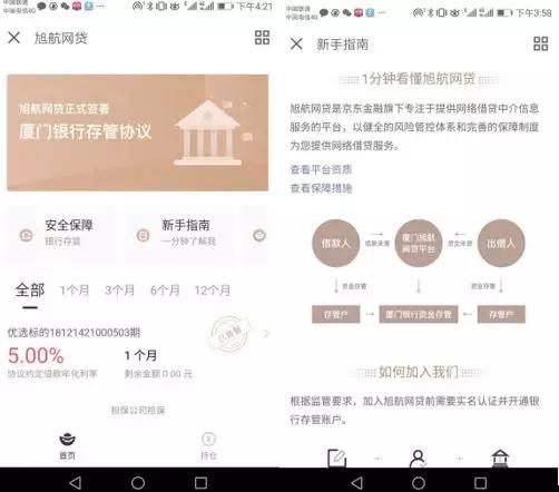 而新手指南里的介绍表明:旭航网贷是京东金融旗下专注于提供网络借贷中介信息服务的平台。