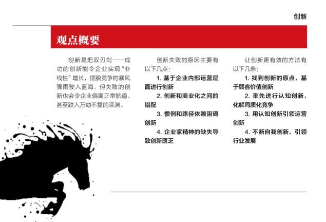 以上四个方面,是我们对企业创新失效原因的一些归纳总结。创新与风险如影随形,我们认为,要想有效驾驭创新这匹“烈马”,则需要洞悉创新的关键,并掌握一套更有效的创新方法及路径。