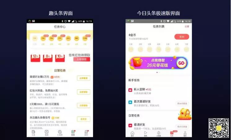 但是,它可以派出一支特种兵,叫做头条极速版,它和趣头条的界面非常像。这就会对趣头条带来影响。