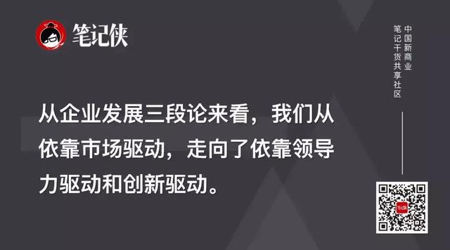 从企业发展三段论来看,我们从依靠市场驱动,走向了依靠领导力驱动和创新驱动。