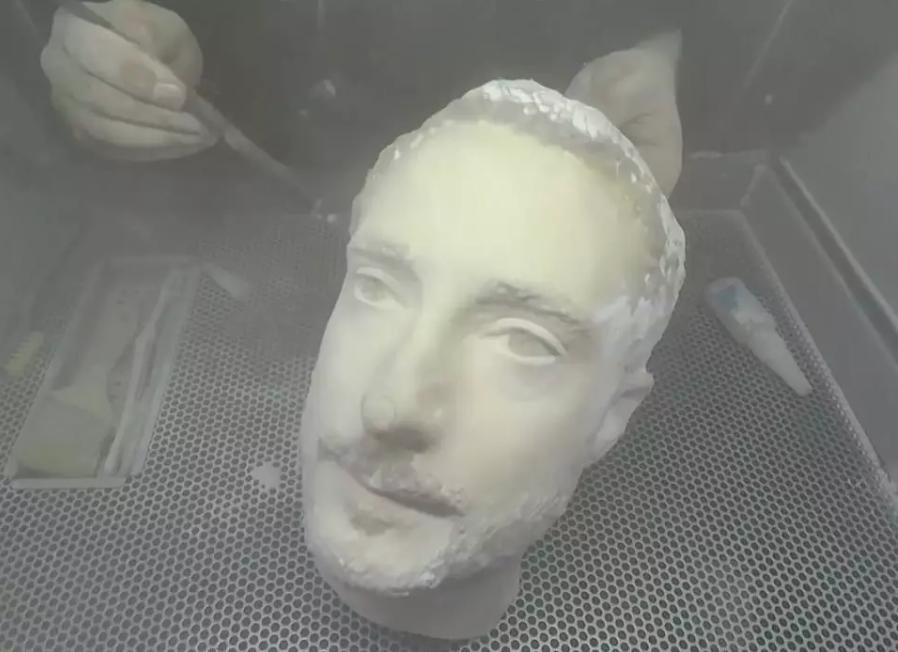 接下来,Backface 用一台以石膏粉为原料的 3D 打印机打出模型。然后进行面部修复和上色。利用这种方法几天之内就能做出一个真人头部大小的模型,总花费仅 300 英镑。