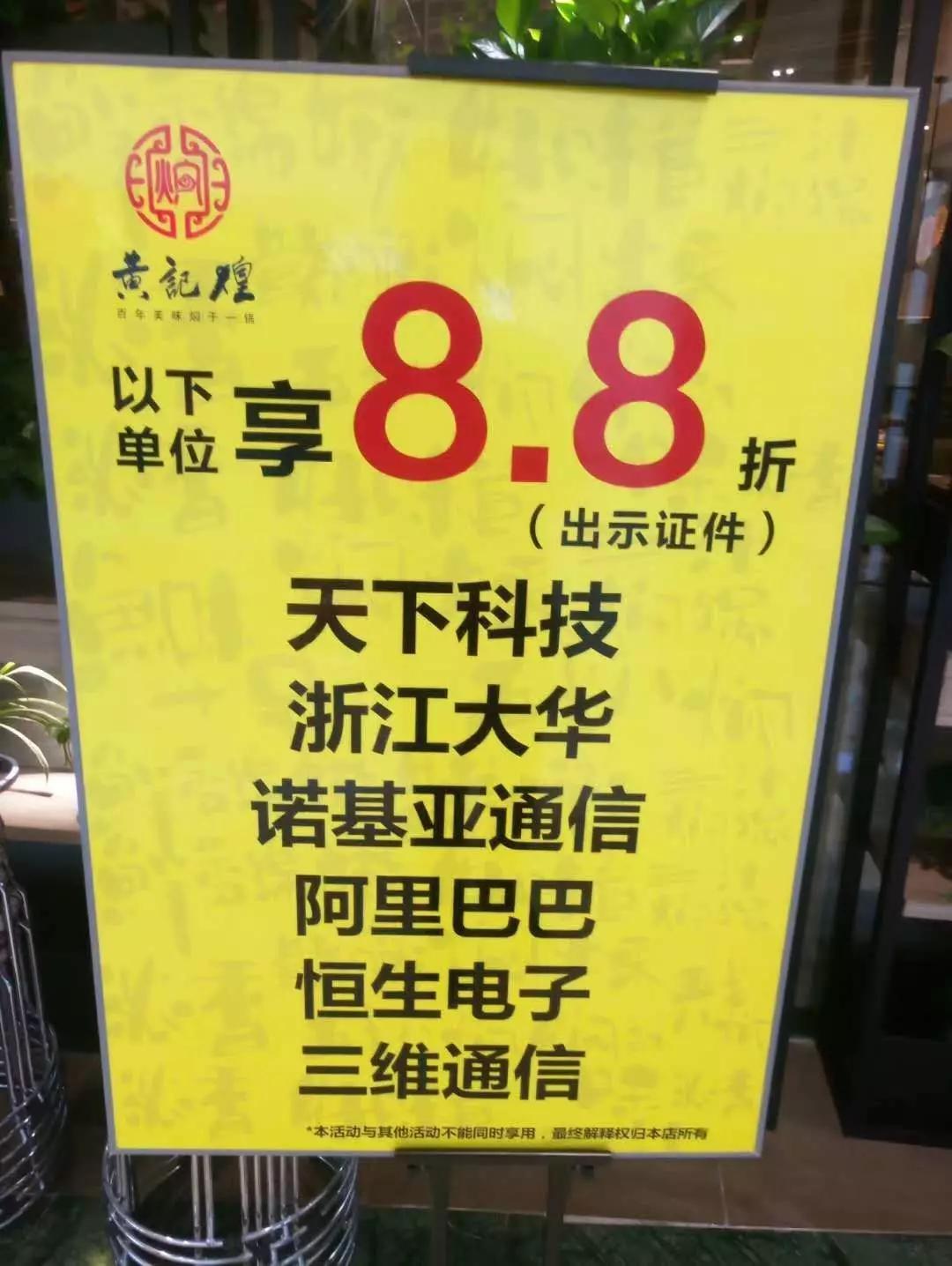 接下来的这个案例就“大胆”得多了,明确表示只有这 6 家公司的员工,出示证件才能享受 8.8 折的优惠。由于如此强烈的针对性,想必会引发不小的舆论。