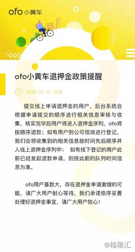 虽然公司工作人员多次解释,ofo押金一定会按数退回,时间慢只是因为公司需要时间来进行数据的核实,但总不免受人猜疑,ofo是否也无钱可退了?