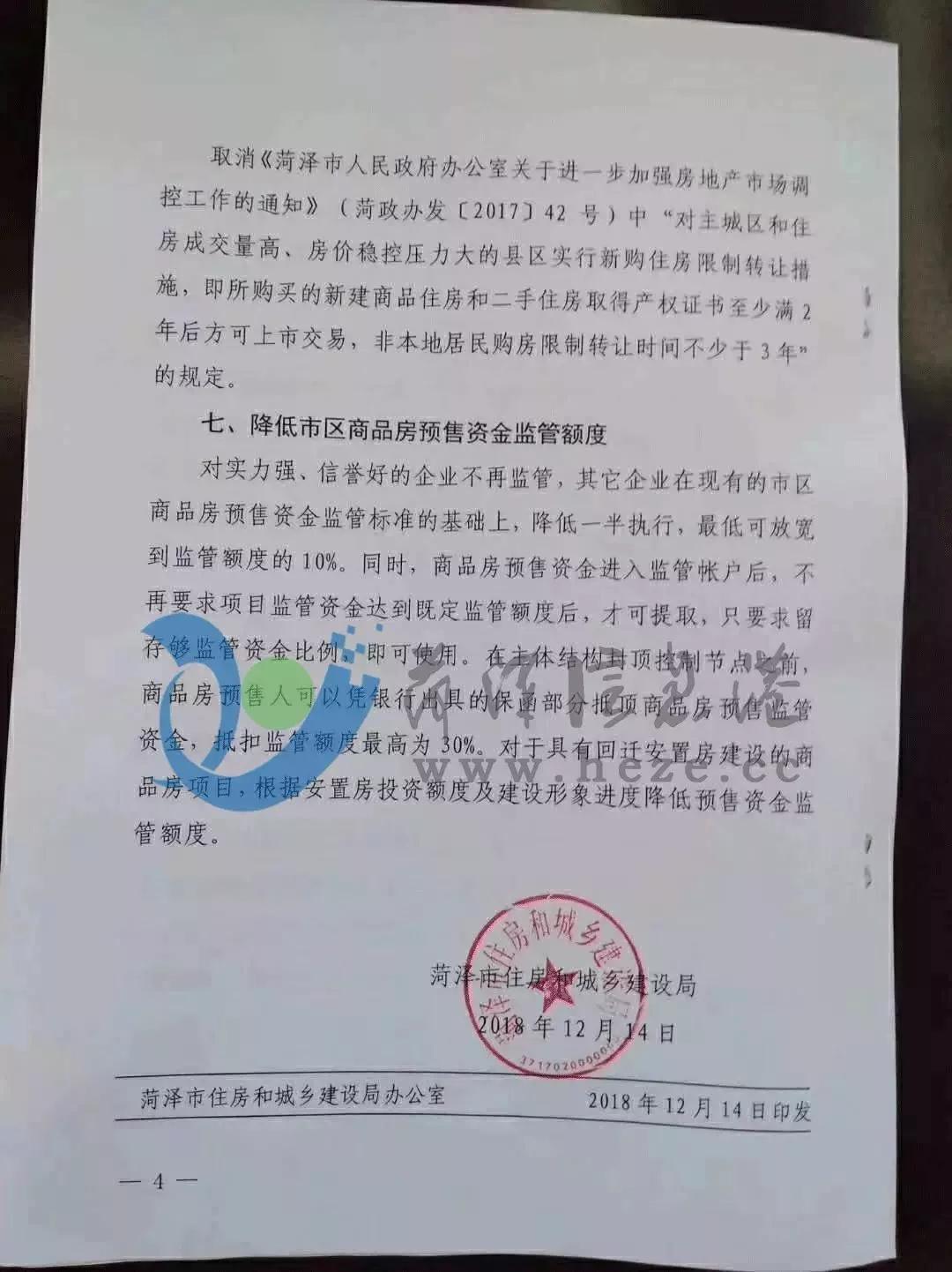 ,菏泽市住建局发布《关于推进全市棚户区改造和促进房地产市场平稳健康发展的通知》,其中明确指出,取消新购住房限制转让措施。正式打响此轮中国楼市因城施策式松绑的首枪。