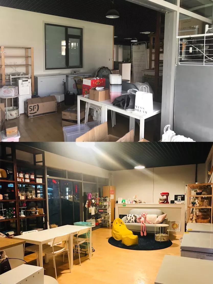 这种熬人但不出活的甜品零售,地地和搭档ba整整坚持了一年。一年之后,她们觉得该调整方向做烘培培训了,于是又搬家租下了一个160平米的店铺做工作室。