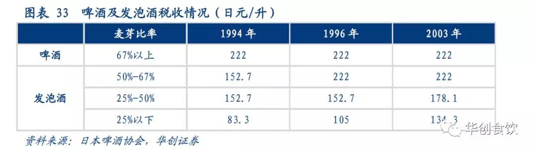 发泡酒因酒税较少受到酒厂欢迎。在日本,麦芽比率67%以上的酒水为啤酒,麦芽比率低于67%的酒水为发泡酒。80年代末各大啤酒厂竞争激烈,降价战略遭遇瓶颈,酒厂在税金上寻找突破口。当时一升啤酒需要支付222日元的税金,而发泡酒只需支付152.7日元税金,厂家为形成低价优势纷纷研制发泡酒。1994年三得利推出首款发泡酒Hops,并以低价优势受到市场欢迎,发泡酒市场自此打开。1996年酒税政策调整,麦芽比率在50%-67%之间的发泡酒与啤酒同税,此后三得利推出麦芽比率低于25%的Super Hops以应对政策变化。
