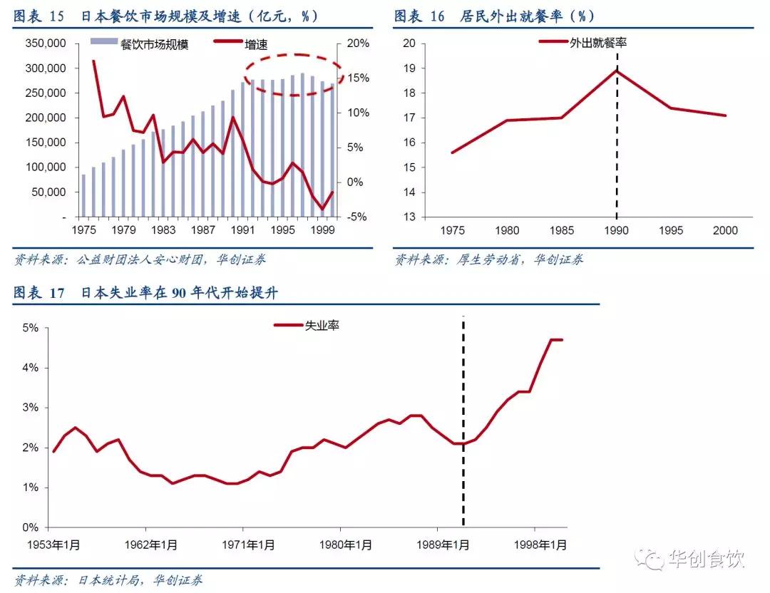 居民对未来预期不明朗,外出就餐减少。90年代日本居民可支配收入下滑,失业率提升,消费者对未来预期不明朗。在此期间,居民外出就餐减少,一部分回归家庭饮食,另一部分消费方便食品。根据厚生劳动省调查数据显示,居民外出就餐率从1990年的19%下降到2000年17%,受外出就餐减少影响,日本餐饮市场规模停止增长,90年代末开始下滑。