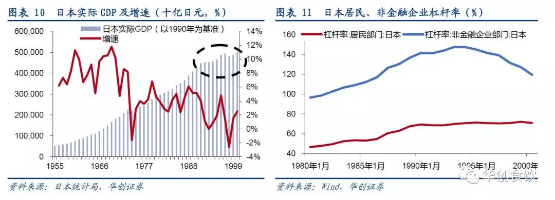 90年代初日本地产、股市泡沫破裂,经济增长停滞。80年代末日本居民、企业对房地产投资预期依然高涨,居民和非金融企业部门杠杆率持续提升至高点的近70%和140%。1989年日本实施紧缩的货币政策,央行利率从1989年的3.25%提升至1990年6%,日本货币政策转向刺破日本股市楼市泡沫,日经指数从1990年初的近39000点下挫至年末的22000点,此后日本股市一直处于低迷状态;90年代日本地价持续下降,六大主要城市价格指数在1991年-2000年间下降近3倍。股市、地产泡沫破裂后,日本GDP及CPI增速下滑甚至出现负增长,日本经济陷入长期通货紧缩状态。