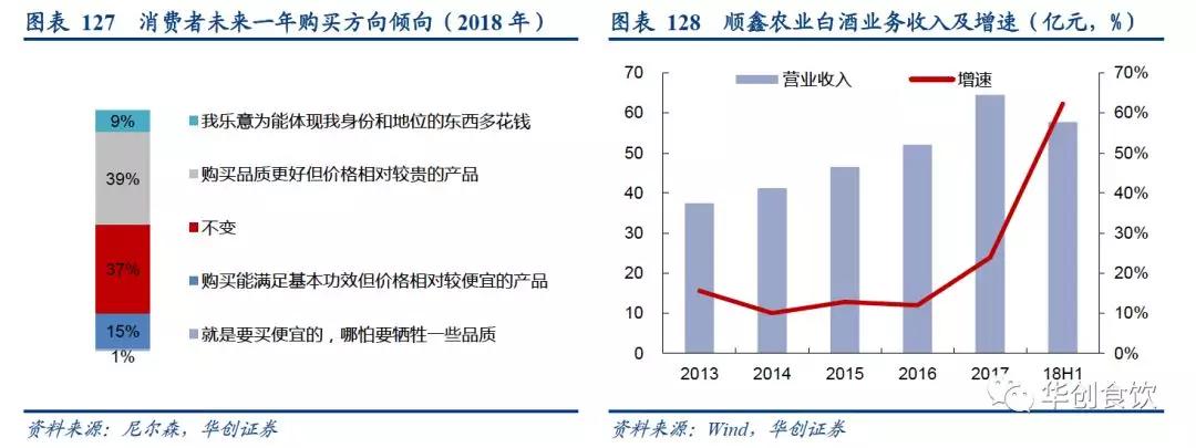 低端光瓶酒市场空间大,高性价比驱动份额向品牌龙头集中。目前我国低端酒市场规模约2000-3000亿元,主要仍以地产低端酒和散酒为主。根据尼尔森数据统计,理性消费时代,当前消费者逐步由“面子消费”转换为“里子消费”或者“健康消费”,统计称有超50%消费者购买行为是在性价比的驱动下进行的,仅有9%消费者愿意为能体现自己身份和地位的产品多花钱。因此,在低端大众酒市场中,在消费高性价比趋势之下,产品高性价比的白酒品牌快速提升份额,如牛栏山二锅头凭借陈酿大单品高性价比优势、外埠渠道积极推进全国化,实现快速增长,市占率稳步提升。此外,如短保面包、速冻食品等在高性价比趋势之下,行业也具备良好增长态势。