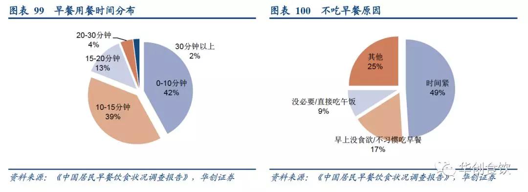 城镇化率不断提升,快节奏都市生活之下,饮食便捷性成为趋势。如早餐方面,时间因素为影响居民早餐用餐率的重要因素。《中国居民早餐饮食状况调查报告》显示,35%的调查对象做不到每天吃早餐,其中49%人因时间原因不吃早餐。在早餐用餐时间上,42%的调查对象用餐时间在10分钟以内,81%的调查对象用餐时间在15分钟以内。