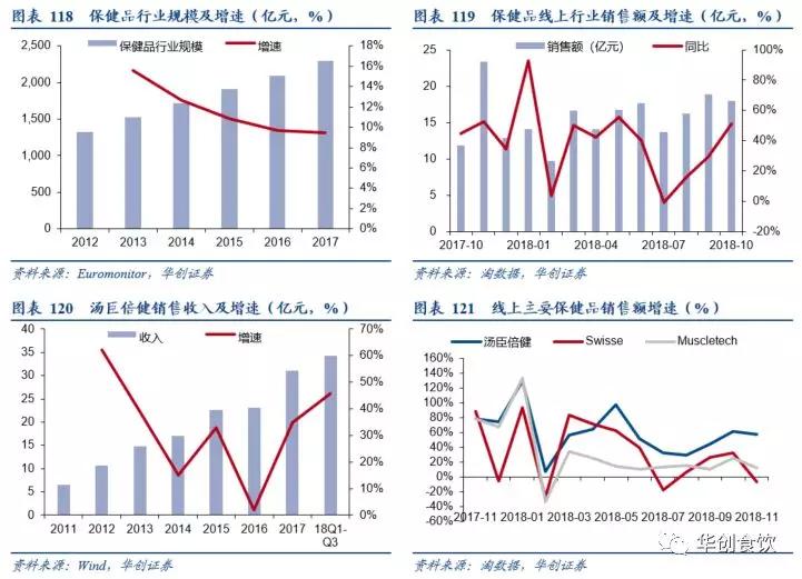 老龄化及健康意识增强,保健品行业快速发展。欧睿数据显示,2012-2017年保健品行业规模从1324亿元增长到2293亿元,CAGR为11.6%,行业近年来保持良好增长,尤其线上电商渠道发展更为迅速,电商渠道占比逐步提升,淘数据显示阿里平台保健品行业1-11月销售额同比增长75%。
