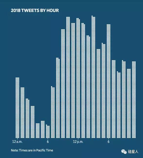 据华尔街日报的一份统计,马斯克正在越来越频繁地发推。2016到2017年,平均每个月发94条推特,而到了今年年中,他每个月的发推数达到400条,而且从发推时间来看,他似乎无时无刻不在盯着推特。