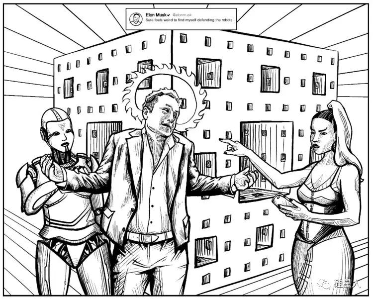 她把马斯克的所有推特,制作成一幅幅漫画,取名为“温柔地向我发推”,画中的马斯克像是天神下凡。
