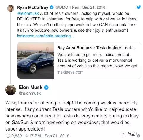 之后,特斯拉粉丝们熟悉的一幕发生。 一名特斯拉车主在推特上@马斯克,并说道:“很多车主,包括我自己都很乐意做免费的志愿者,我们不能做那些交车手续,但我们可以给新车主介绍功能,教育新车主并且看到他们的快乐和激情是很有趣的。”