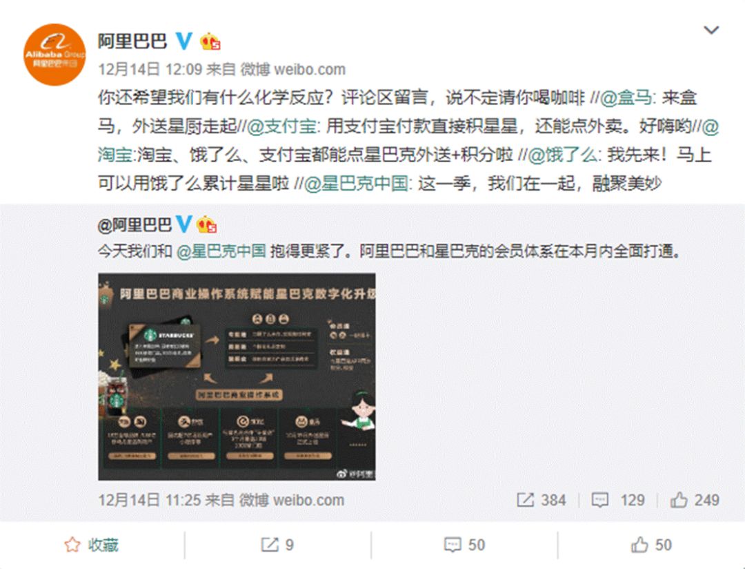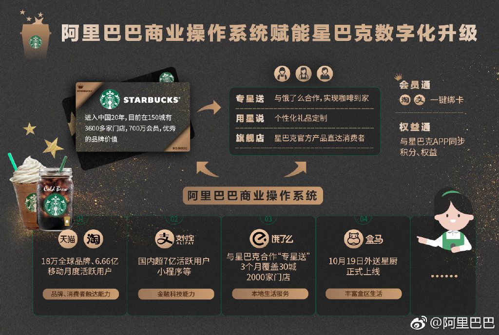 得出这个结论并不全因为瑞幸的快速崛起,而是星巴克在中国拥抱数字化的过程中先后和两位“马爸爸”眉来眼去。