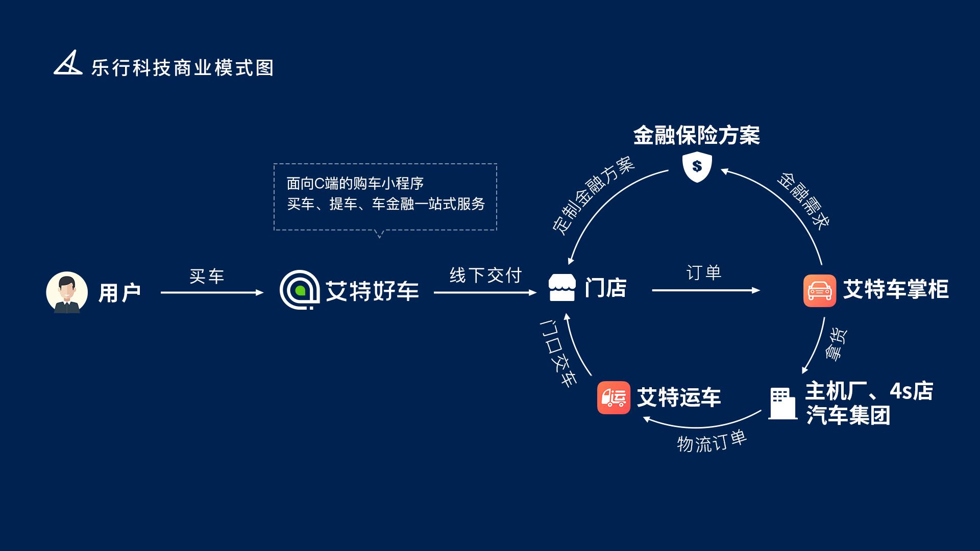 截至 2018 年 12 月,乐行科技已与国内十余家知名金融机构达成战略合作,旗下面向 B 端的产品“艾特车掌柜”(微信小程序)已拥有全国上千家汽车经销商,服务全广东省 3068 家综合汽贸店,全国汽车交易量月增长 30%;面向 C 端的产品“艾特好车”(微信小程序)依托微信流量,为消费者提供看车、选车、购车、金融、保险、提车一站式服务。