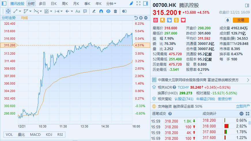首批游戏版号审核加快,腾讯大涨4.5%市值重返3万亿港元