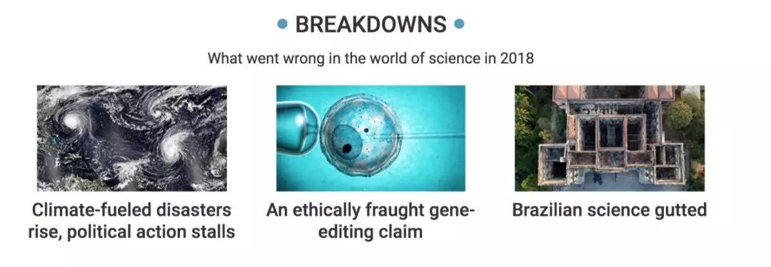 每一年,《科学(Science)》杂志都会评选年度十大科学突破,今年的评选于当地时间20号刚刚新鲜出炉。除了十大年度科学突破(runners-up)外,今年还增加了三个年度科学故障(breakdowns)的评选项目,其中,贺建奎和他的争议项目基因编辑,入选这一年度最大“breakdown”。