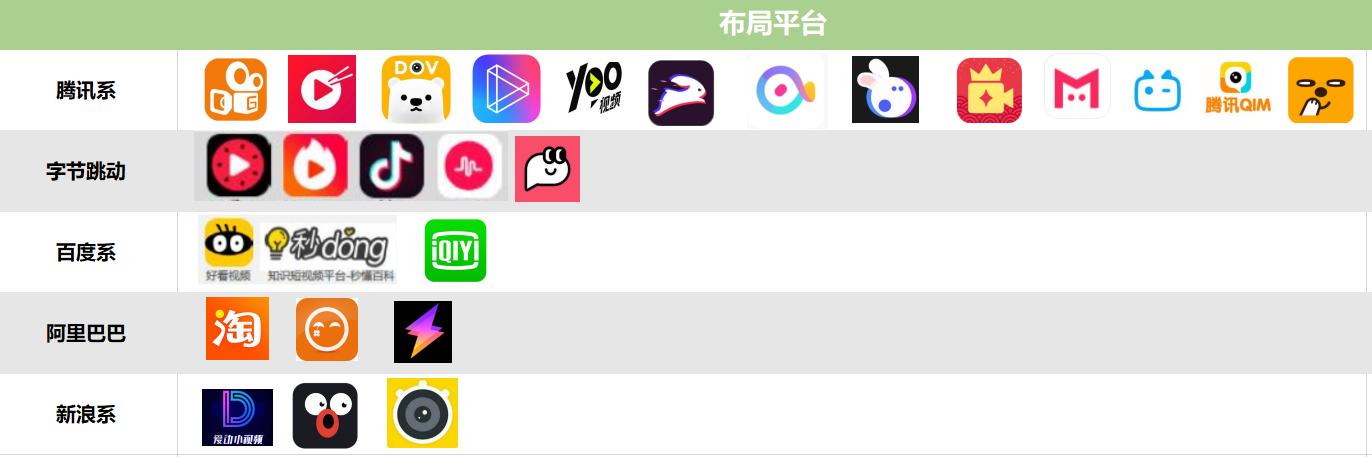 与此同时,长视频应用同样在向短视频领域试探。今年5月18日,爱奇艺正式对外发布信息流短视频产品纳逗,并宣布推出短视频制作工具吃鲸,爱奇艺泡泡也宣布由社区形式改为信息流;阿里去年3月将土豆转型为短视频平台后未见战绩,今年也在筹谋新的举措,并在6月份推出了短视频应用“电流”;腾讯依托社交应用及腾讯视频,大力引流至旗下的微视、yoo视频、下饭视频等等多十几款短视频应用,内部赛马机制体现得淋漓尽致。