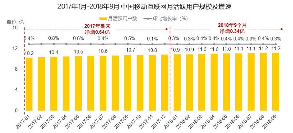在短视频快速增长的同时,整个移动互联网的用户总量增速却在不断放缓。根据QuestMobile的数据显示,从2017年1月到2018年9月,国内移动互联网整体增速继续放缓,用户注意力也更加分散。移动互联网活跃用户规模增速同比降低超50%,9月总活跃用户规模达11.2亿,逼近饱和。移动互联网用户增长的放缓,短视频领域的快速崛起也直接促使巨头们将下一个增长的目标放在了短视频这块蛋糕上。